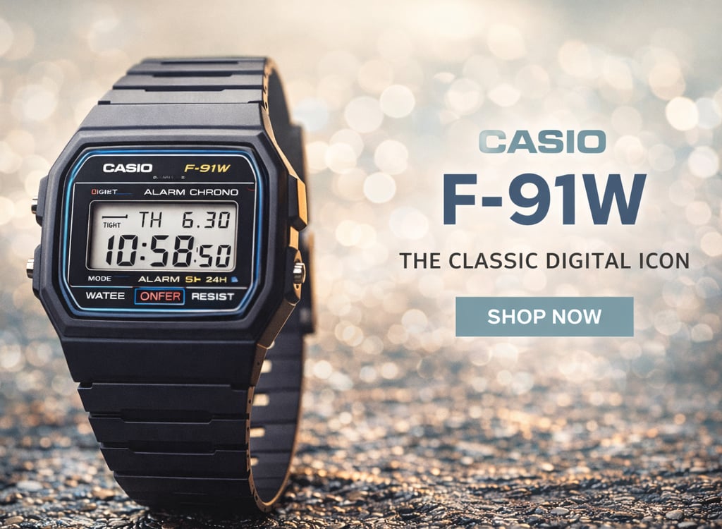 One of the most iconic digital watches ever made, the Casio F-91W remains a symbol of late-’80s and early-’90s design. Its slim profile, rectangular case, and clean digital display make it a true retro essential.